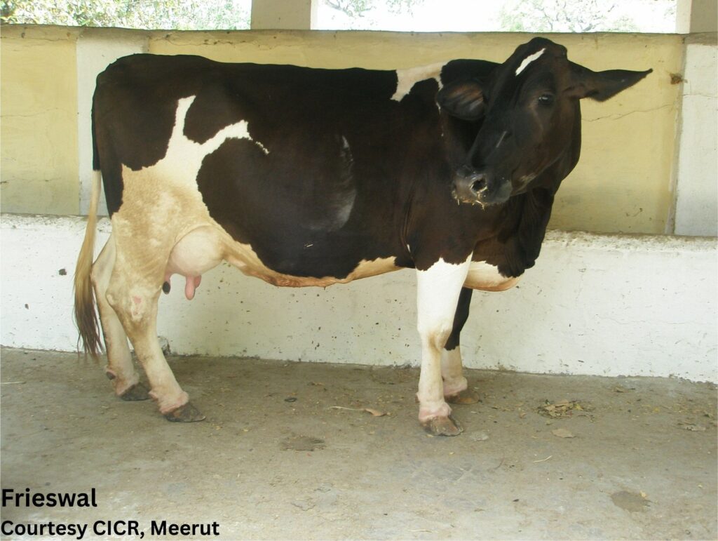 Frieswal is a hybrid breed of dairy cow developed by the Indian government’s Central Institute for Research on Cattle (CIRC), Meerut, Uttar Pradesh, by crossing Sahiwal and Holstein Friesian breeds. In December 2023, the NBAIGR registered the Frieswal cow, making it the first artificially developed cow breed in India.